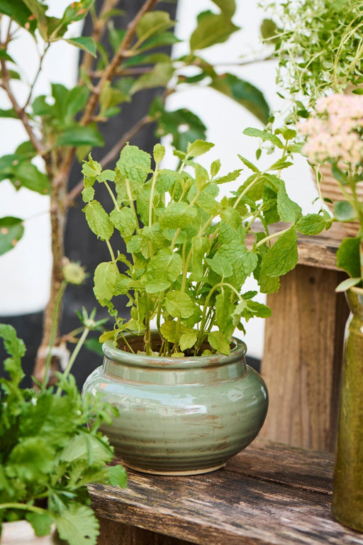 Potteskjuler/blomsterpotte i mosegrønn H 17 x Ø 14,8 cm